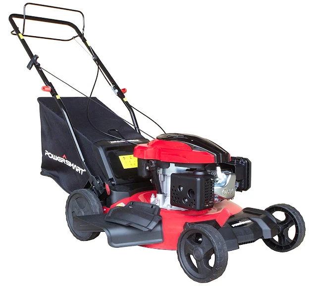The compact, 159cc self-propelled gas-powered power smart DB8621S self-propelled lawn mower is easy to operate in tight spaces & features three cutting systems including side discharge option & mulching capability plus a collection rear bag.